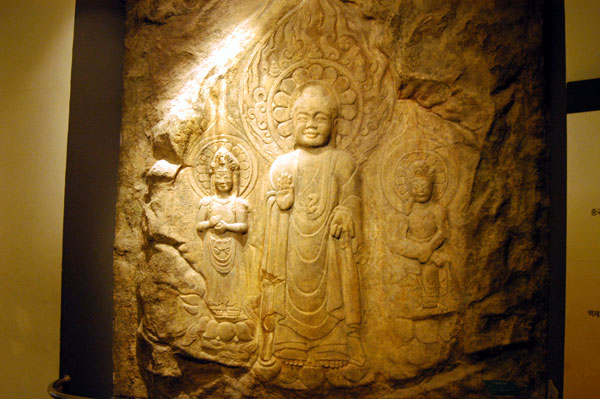 At the entrance of Exhibition Hall 3, there is a statue of Seosan Rock-carved Buddha called the smile of Baekje.The exhibition is divided into Buddhist art, foreign exchange, Baekje architecture, and roof tiles that show the outstanding metal Buddhist art of the Baekje period. The standing of Geumdong Maitreya and the standing of Geumdong Gwanseum Bodhisattva show the refined sculptural beauty and the soft smile of the Baekje people at that time.