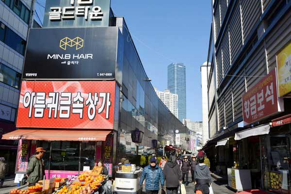 凡一洞貴金属通りの入口には「ゴールドのテーマ(Gold Theme)」が表記された四角の造形物が設置されており、近所に平和卸売市場と自由卸売市場、また、婚礼専門市場の釜山鎮市場もあって、以前から釜山を代表する貴金属通りとして脚光を浴びました。