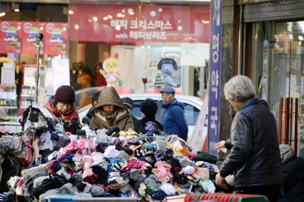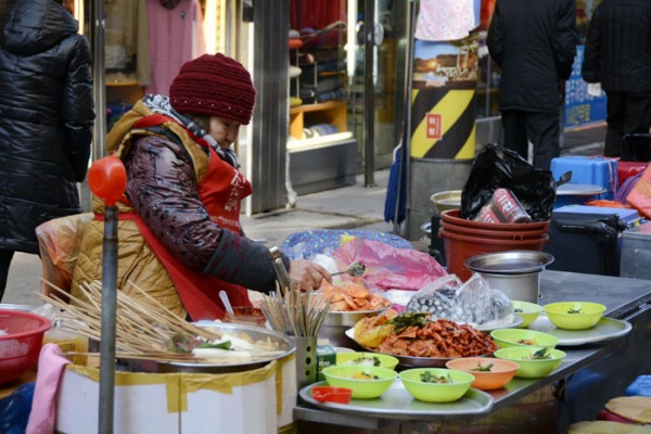 방금 지나온 현란한 거리에 비하면 다소 어수선한 분위기지만 재래시장의 멋과 이런 골목 야외 시장은 독특한 서민만의 맛이 있다. 골목에 들어서면 길게 늘어선 음식 노점이 있다. 이곳에서는 따뜻한 음식들에서 올라오는 하얀 김이 겨울 정취를 자아낸다.