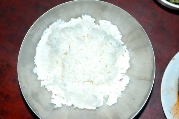큰 스테인리스 그릇에 담긴 따끈한 흰밥과 매콤달콤한 갓 절인 배추김치, 어묵볶음, 시원한 국물이 일품인 미역냉국, 밥그릇에 비해 조금 작은 느낌의 미니 순두부찌개가 식탁에 오르면 입안에서 군침이 돕니다.