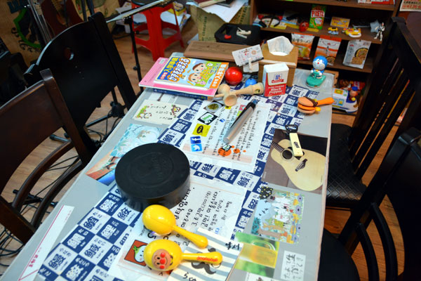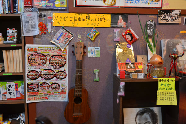 가게 안에는 일본어와 한국어로 쓰여진 많은 것들이 장식되어 있습니다.