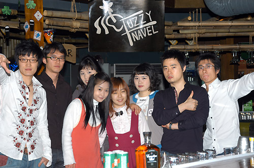 また、一番込み合う夜中になると真ん中にあるカクテルバーでは突然カクテルショーが・・・!ナイスガイのバーテンダー、タイキさんとブルーさんが息の合ったショーをみせてくれます。もう興奮の連続!!プサンに来て普通の屋台や飲み屋で飲むのもいいですが、最高の思い出をこの「Fuzzy Navel」で作ってみるのはいかがですか。まだ数少ないですが日本の方の常連客も早くもいるそうで、これからますます多国籍な雰囲気を見せてくれること間違いなし!皆さん一度足を運んでみてくださいね!