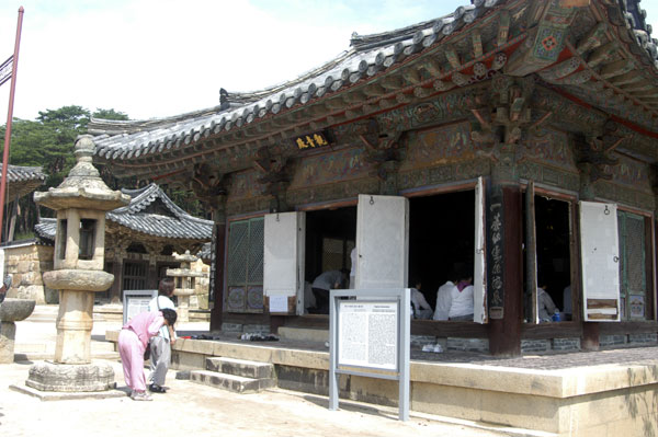 대웅전에는 불상이 없으며 부처님 사리탑이 참배 대상이 됩니다.
