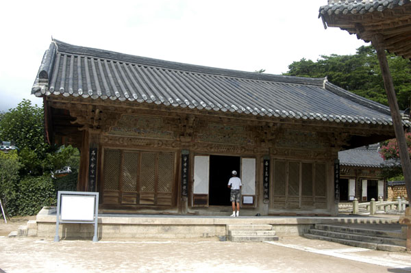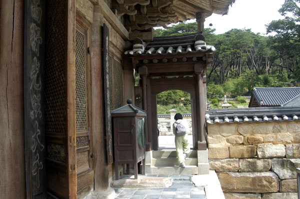 부처님의 깨달음 세계에 이르는 마지막 관문인 불이문 너머로 대웅전이 보입니다. 불이문을 나가면 오른쪽에 관음전이 있습니다.