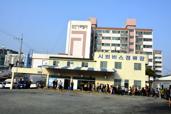 안녕하세요, 해군의 거리 창원시 진해구에 있는 시외버스터미널입니다. 이곳에서 다른 교통편을 이용하지 않고 진해의 아름다운 벚꽃 명소를 도보로 둘러보실 수 있습니다. 부산행 시외버스는 평일 15분~20분, 토 일 국경일은 상시운행, 서울행(남부터미널)은 1시간 30분, 동대구행은 1시간~1시간 10분 간격으로 운행되고 있습니다.