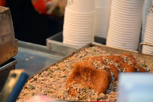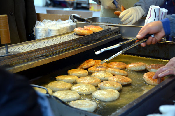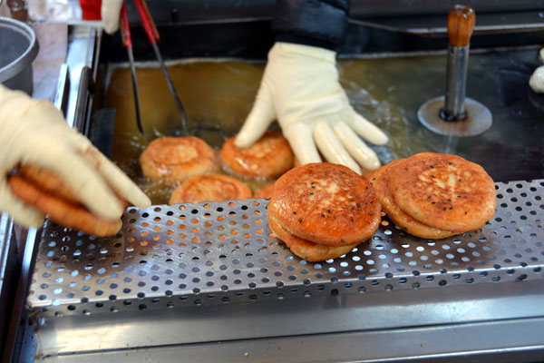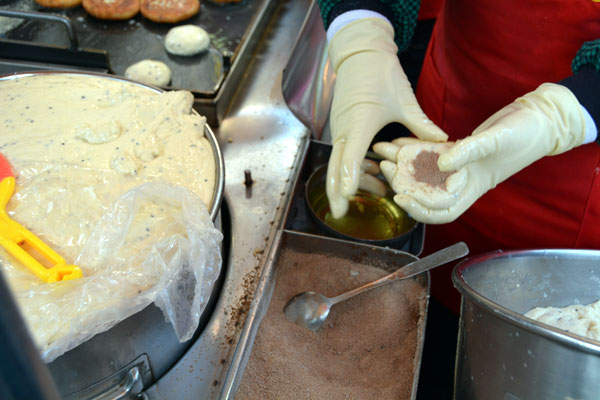 흑설탕 들어간 밀가루또는 찹쌀 반죽에 여러 가지 씨앗을 넣은 호떡 1,500원