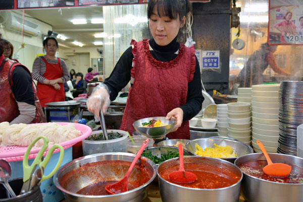 김밥, 죽, 파전 등 길거리 음식을 맛 볼 수 있습니다