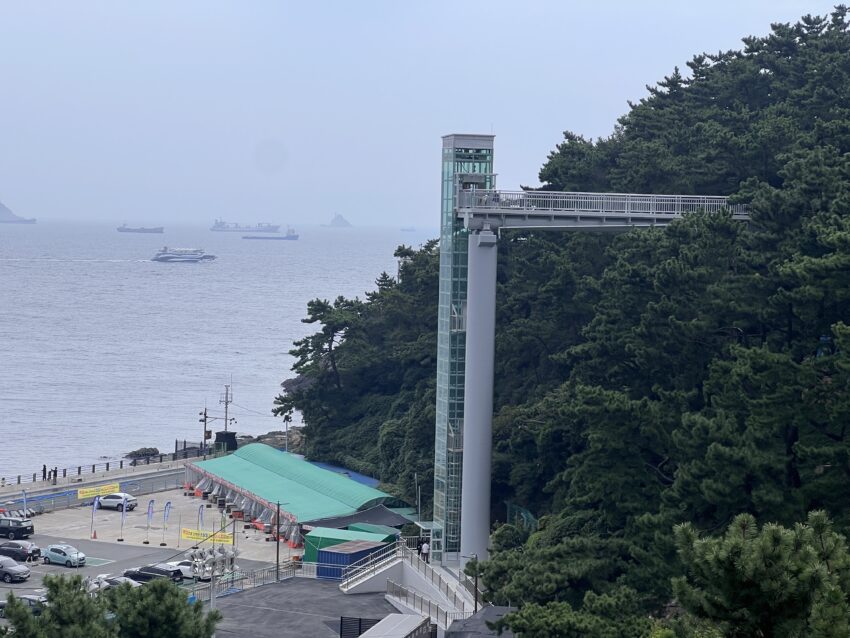 釜山の人気観光名所の一つである松島海上ケーブルカーの終点である岩南公園松島スカイパークの真下に位置する松島龍宮クルム橋と岩南公園公営駐車場を結ぶ「松島龍宮オルムキルエレベーター」が開通されました。