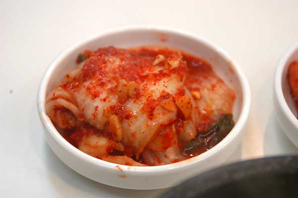 真っ白いスープに牛肉と素麺、千切りした長ネギ、ご飯が入ったソルロンタンは、臭みが全然なく、お肉も柔らかくて子供連れのお客も多い店です。ソルロンタンには欠かせないピリ辛味の真っ赤なカットゥギを付け合せて食べるとさらに食欲を増してくれますが、スープの味が薄く感じる方は、テーブルの上においてある塩とコショーで味付けます。