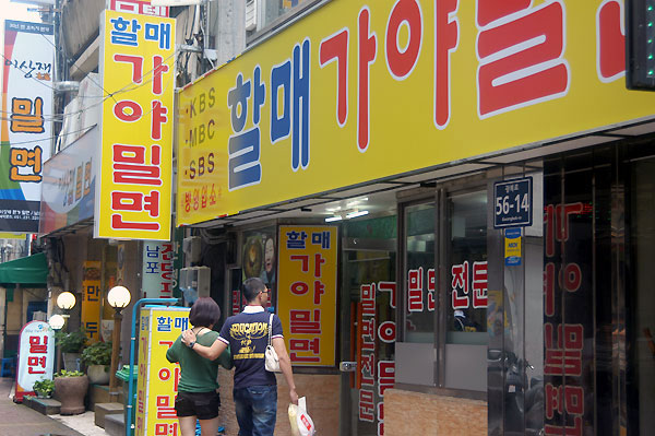 夏の料理が本番を迎えたこのごろ、釜山市内のミルミョン専門店は、涼しげな冷たいミルミョンを食べにくる客で忙しい時期を過ごしていますが、釜山最大の在来市場の国際市場の付近にも釜山地元の人のみではなく、釜山を訪れる観光客にも人気のあるお店があります。