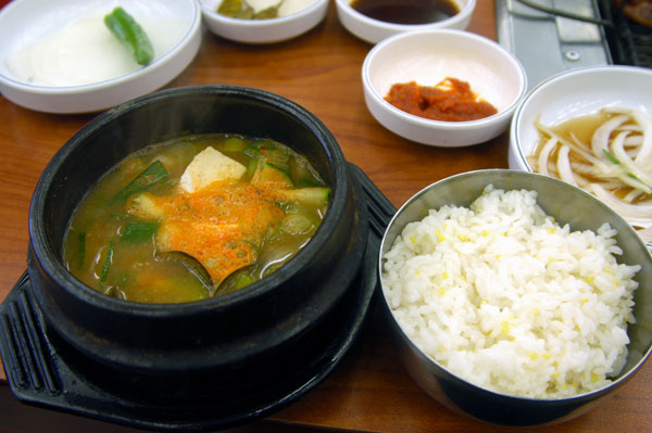 コンギバッ(ご飯)を追加しましたら白菜キムチなどの付け合せやサービスとして出てくるテンジャンチゲ(韓国風味噌汁)、焼肉を釜山地元の人々でにぎわう食堂で食べてみるのもいいですね。