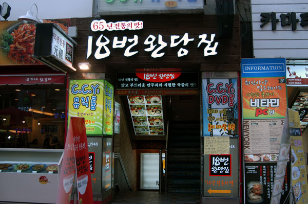 行き方:地下鉄1号線チャガルチ駅で下車し、7番出口を出てからすぐの横断歩道を渡って直進するとロッテリアがあります。そこの角を左に回っていくと屋台の軽食が楽しめるBIFF広場があります。BIFF広場の釜山劇場やマクドナルドの建物の左角を曲がって少し進むと右手にお店の看板が見えます。お店は地下にあります。