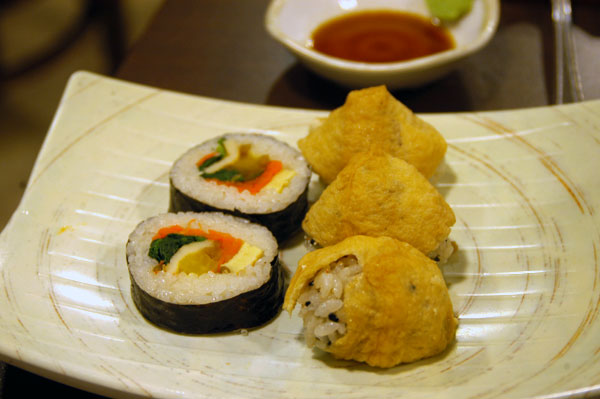 ワンタン+ユブチョバップ(いなり寿司)+キムチョバップ(海苔巻き)