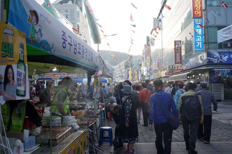 釜山は10月3日から行われている釜山国際映画祭で盛り上がっていますが、釜山映画祭の野外舞台が設置された南浦洞BIFF広場の向かい側にあるチャガルチ市場では、10月10日から2019釜山チャガルチ祭りが始まりました。この時期に来るとお手ごろな値段で焼き魚、アワビなどの貝焼き、お刺身が楽しめます。大きな仮設テントの屋台では、一皿15,000ウォンで売っていました。2019釜山チャガルチ祭りは10月13日(日)まで開催されます。