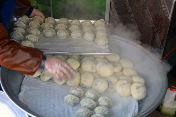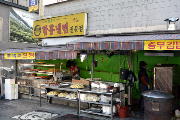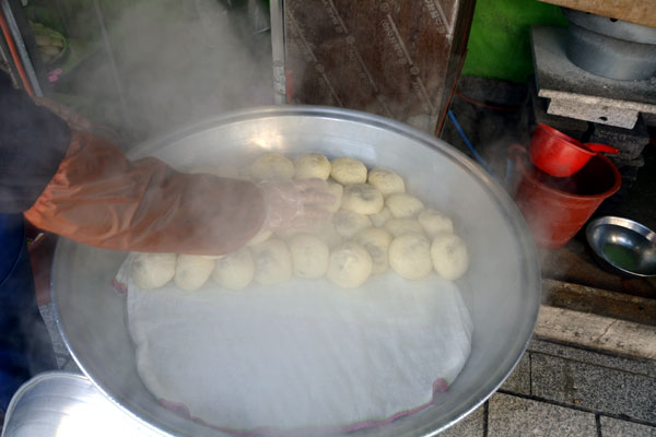 釜山地下鉄1号線が走る南浦洞の農協スーパーを通り過ぎて少し歩いていくと左手に暖かい白い湯気が立ち上がる懐かしい味のチンパンを売っている屋台があります。この蒸しパンのことを韓国ではチンパンと言いますが、昔、庶民のお父さんがこれを買い、家に帰ったら家でお父さんを待っていた子供たちが大変喜んでくれた追憶のチンパンです。​