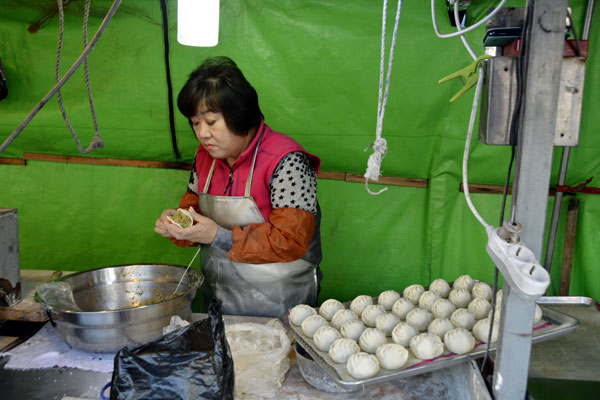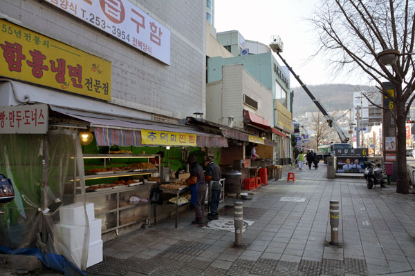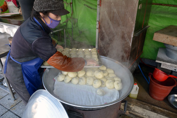 こんにちは、釜山南浦洞に位置するチャガルチ市場は、新鮮なお刺身や活気満ちる魚市場ならではの​雰囲気を堪能するための客でいつ賑わう場所ですが、その一角に昔ながら間食として人気のあるあんこ入りの蒸しパン・日本ではあんまんというチンパンが食べられる屋台があります。チンパン以外にもドーナツ​、蒸しマンドゥなどが三つで2,000ウォンという庶民的な値段で食べられます。