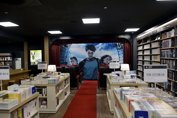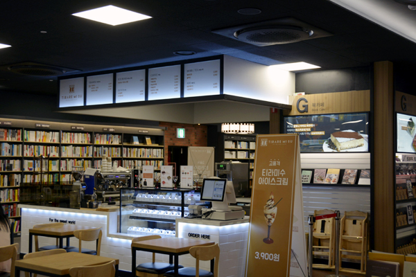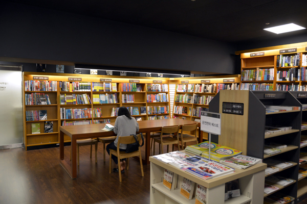 韓国語の勉強に役に立つ本はもちろん、多様なジャンルの本が区域ごとに分かれており、ブックカフェもあります。本以外に文具やCD、雑誌、雑貨、ヘッドフォンなども販売しています。