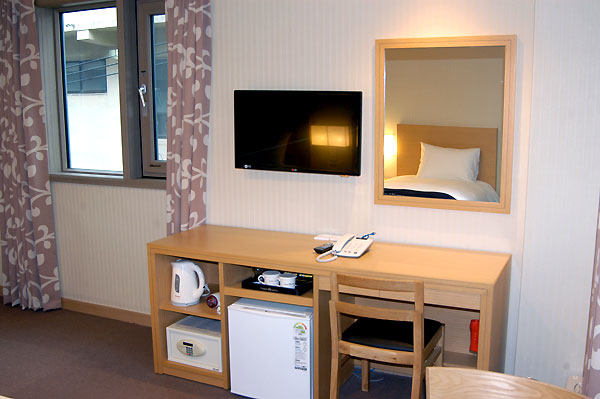 それに近所にコンビにも3ヶ所もありますから何一つ物足りなりところがないホテルですが少し施設が古いという感じもしますがランクが落ちる旅館で泊まるのが嫌な方やハングルに酔った方などにこのホテルをオススメします。