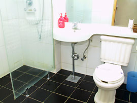TV、エアコン、ヘアドライヤー、小さいテーブルがホテルのすべての客室に完備されており、バースルームでは使える歯ブラシ、歯磨き、ひげ剃りと タオル、石鹸、シャンプー/リンスなどがあります。また、浴槽代わりに最新シャワー按摩自動施設が備え付けられています。