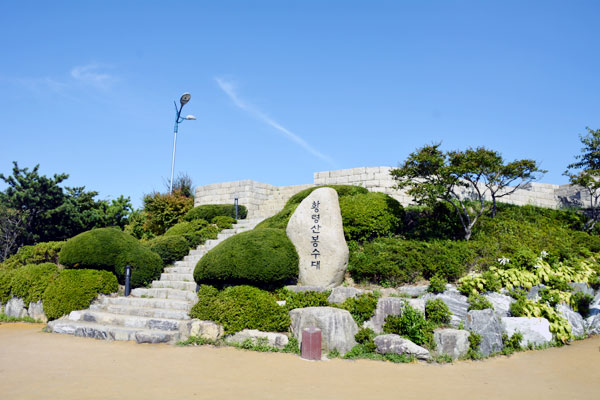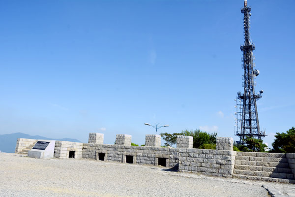 荒嶺山の頂上にある「荒嶺山烽燧台(ファンリョンサンポンスデ)」は、海から敵が現れたら辺境の基地に急ぎ知らせるために使われた朝鮮王朝時代の煙突形の通信施設です。夜は火花、昼は煙で知らせた烽燧(のろし)台は、通常の伝達は1つ、遠い海に敵が現れたときは2つ、敵が海岸に近づいたときは3つ、敵と海戦が起きたら4つ、敵が陸地に上陸したら5つ合図するようにしていたと言われています。