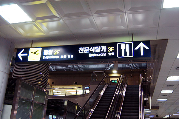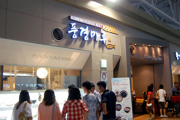 There are restaurants where you can eat Korean or Japanese food, Lotteria, cafes, and luggage storage.