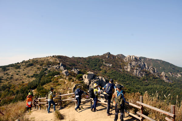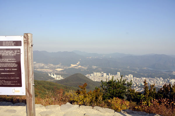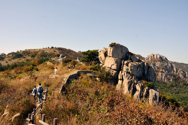 금정산(金井山)은 부산에서 가장 경치가 아름답고 장대함을 자랑하는 산입니다. 해발은 801미터로 그리 높지 않은 산이지만 남쪽의 금강산이라 불릴 정도로 산세가 수려하고 금정산성, 범어사 등의 문화유적과 흑염소 Bulgogi 불고기, 금정산성Makgeolli 막걸리로 유명한 산성마을이 있으며, 동래온천, 금강공Won 등도 가까이 있어 연중 등산객들의 발길이 끊이지 않는 곳입니다.