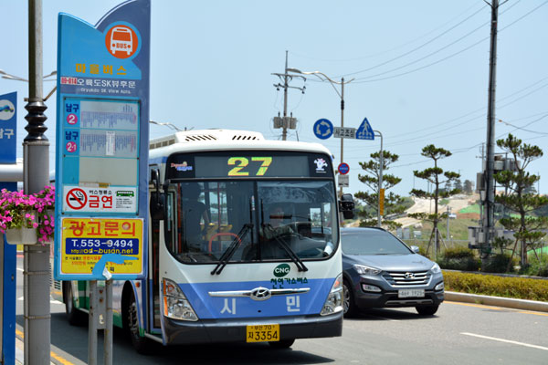 Oryukdo Island can use the tourist cruise ship departing from Mipo Dock of Haeundae Beach and touring Haeundae-Dongbaekdo-Oryukdo Island, but you can use city bus No. 27, the last stop of Oryukdo Island, or Busan City Tour Bus, via Busan Station.