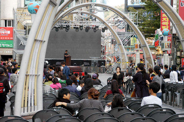 The theater district is a roadside of about 400 m from BIFF Square to Chungmu-dong Roundabout, and Busan Theater and Lotte Cinema are located.