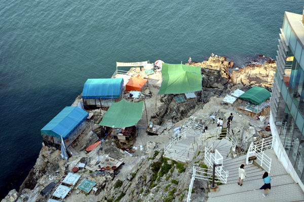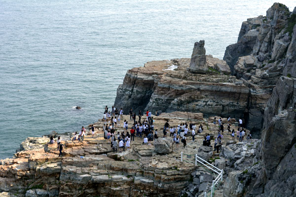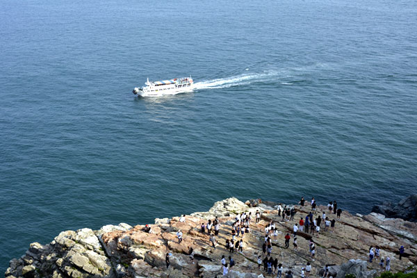 Tourist cruise ships are in operation to enjoy the superb view of the coast of Taejongdae Coastal Cliff, and anglers are lowering fishing rods throughout the beach.  You can also see haenyeo, who collect sea squirt and sea cucumber from the wide and blue sea, swimming quietly and freely as if waking up the silence of the sea.