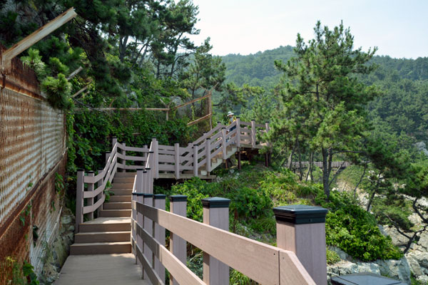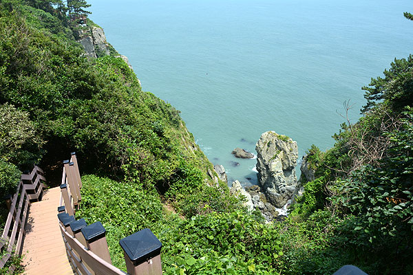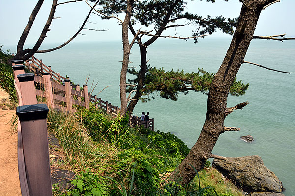 There is an observatory where the view is good, and you can see Oryukdo and a human-shaped rock on the right cliff from the observatory.