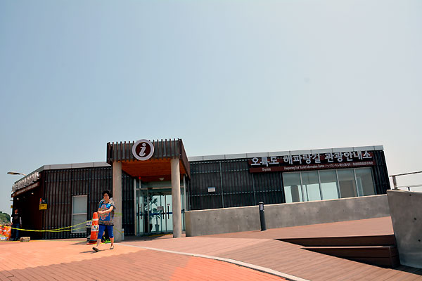 At the entrance of Oryukdo, there is a bus stop #27 and a tourist information center.