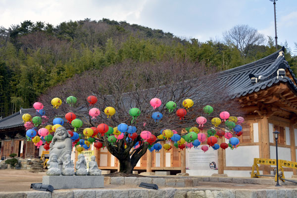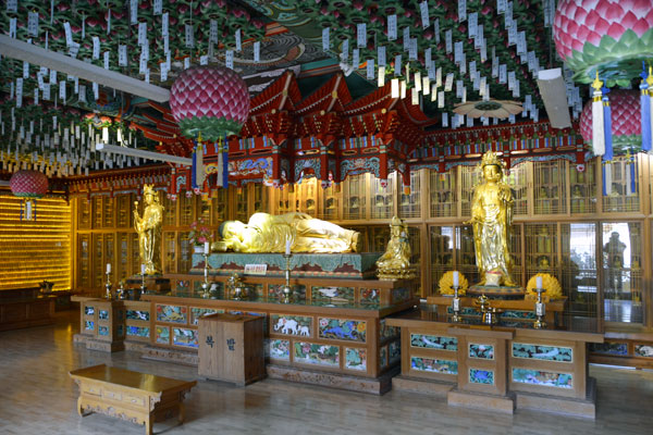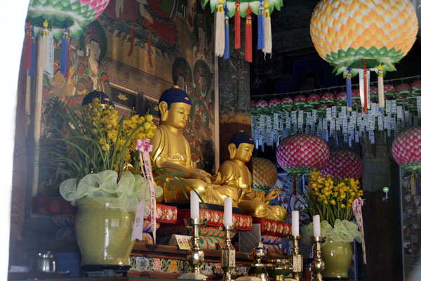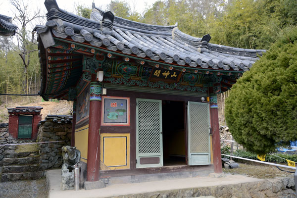 Daeungjeon Hall, which enshrines the main Buddha, was designated as Gyeongsangnam-do Monument No. 118 on December 28, 1974 as an octagonal roof and two on the side, and was re-designated as Busan Metropolitan City Monument No. 37 on March 1, 1995. Right in front of Daeungjeon Hall, there is a three-story stone pagoda with seven Sakyamuni Jinsinsari, and Sansingak Pavilion is located in the bamboo forest behind Daeungjeon Hall.