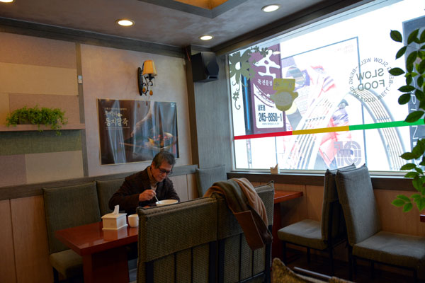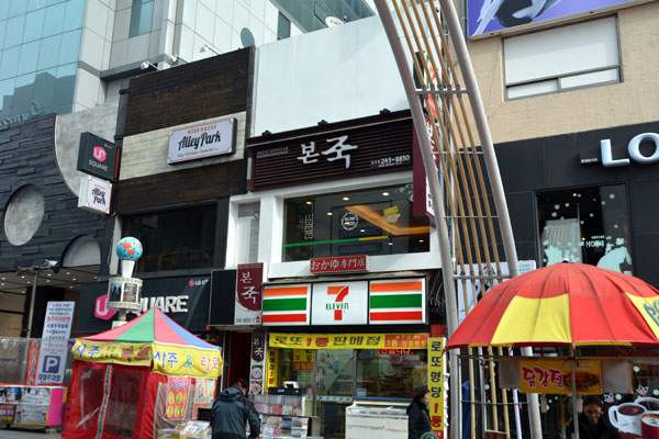 How to go:地下鉄1号線チャガルチ駅で下車し、7番出口を出てからすぐの横断歩道を渡って直進するとロッテリアがあります。そこの角を左に曲がったところが屋台の軽食が楽しめるBIFF広場です。食堂は、ロッテリアの横の建物の2階(BIFF広場側)にあります。