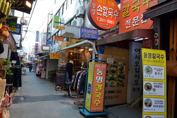 The main menu includes regular kalguksu, Spicy kalguksu, and Kimchi kalguksu. Would you like to enjoy the shopping heaven of Gukje market while eating delicious kalguksu at Gukje market?