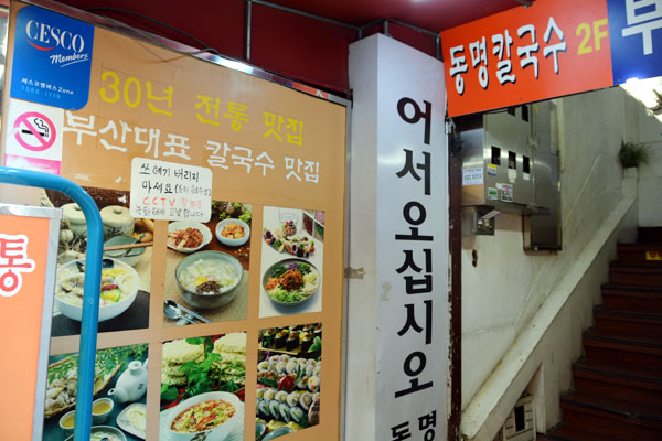 Hello, around 2 p.m., Gukje market’s cart alley is full of cart bars, and if you walk through the crowded alley, you will find Dongmyeong Kalguksu restaurant, a kalguksu restaurant.