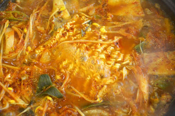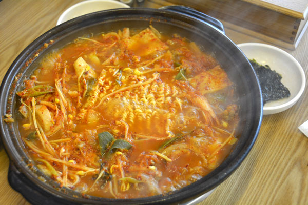 Kimchi stew, which can be ordered for two or more people, is made with aged kimchi with a deep taste and ramen, so a moderate sour taste stimulates your appetite.