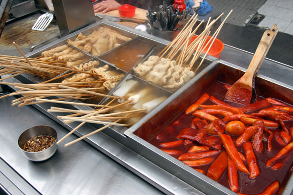 You can taste fish cake, squid stew, and tteokbokki at the cart bar street connected to Dwaejiigukbap Street in Seomyeon.