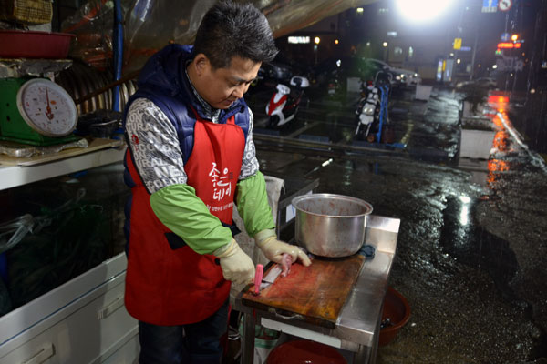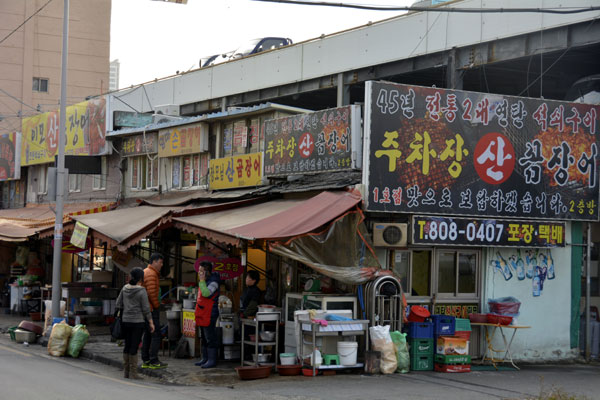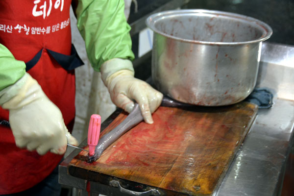 Hello, there is Busan’s specialty eel street at Bujeon Market, the largest food market in Busan.