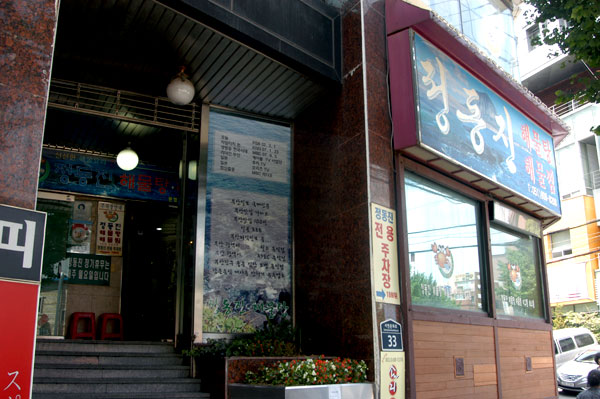 식당이름으로 부산에서 차로 동북쪽으로 6시간 정도 떨어져 있는 강Won도 동해안 유명 관광지, 정동진의 지명을 사용하며 새해 해돋이의 명소로도 유명한 정동진의 해산물의 맛을 내려는 해산물 요리 전문점입니다.
