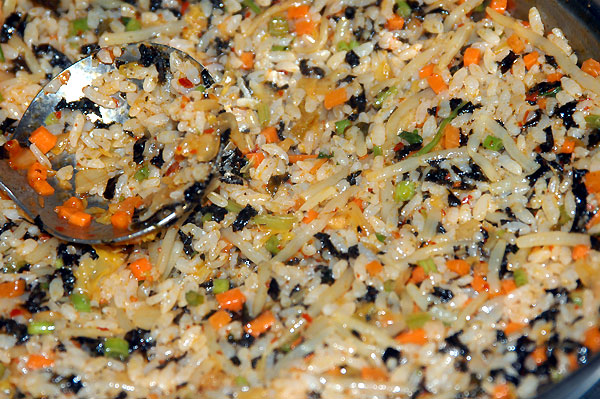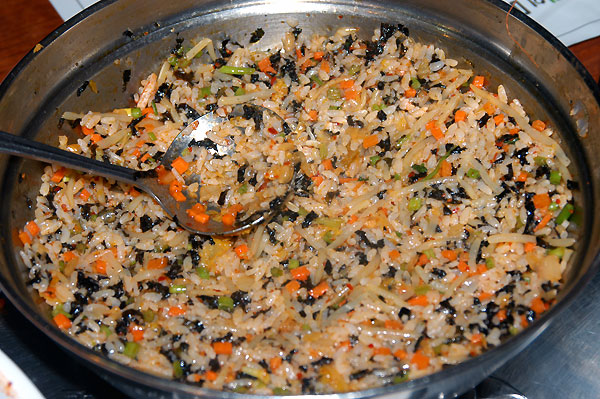 해물 요리의 마지막에는 남은 국물과 양념에 밥, 김, 야채, 참기름을 넣고 볶은 볶음밥입니다.