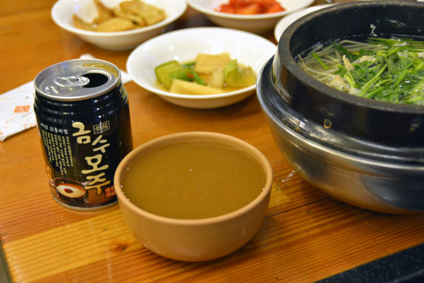 For young musicians, seasoned blowfish skin (10,000 won per plate) mixed with water parsley, cucumbers, and pears on a cold blowfish skin is popular for its chewy taste.Gangju, which has been boiled for 12 minutes with 9 kinds of herbal medicine in takju, is said to have a refreshing aftertaste of about 2% alcohol, so many people enjoy drinking it as a drink they enjoy.