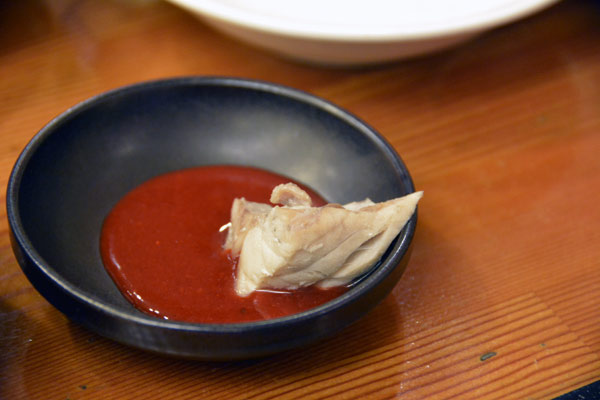 It is common for blowfish to remove poison from the eyes, gills, eggs, and intestines and soak it in water to remove poison from the bones, but the broth is thicker because the goldfish uses poison in the cooking process.The blowfish soup has two earthenware bowls overlapped, so the heat remains for a long time, so it does not cool down until you finish eating it.