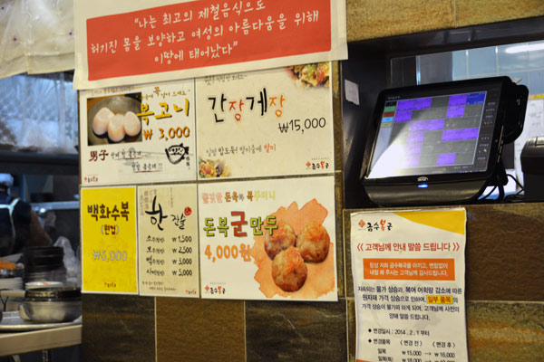 By the 1970s, when Geumsu Bokguk first opened, a bowl of Seolleongtang was 70 won and blowfish soup was 200 won, but now the price difference of the food has disappeared, and blowfish soup is now also a food for ordinary people.