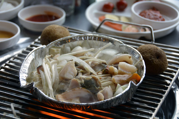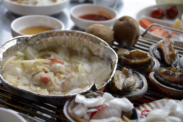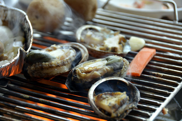 Slightly baked scallops and kijams in a pan of aluminum foil with onions and butter, cut into bite-sized pieces, and then cooked in aluminum foil, are very delicious.Grilled eel, grilled abalone, and rockfish are also delicious.