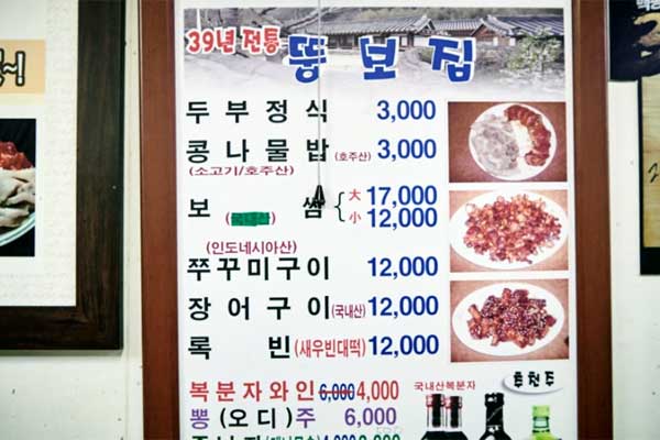 A popular restaurant in Jukkumi Alley is ttungbojip at the entrance of Jukkumi Alley.
