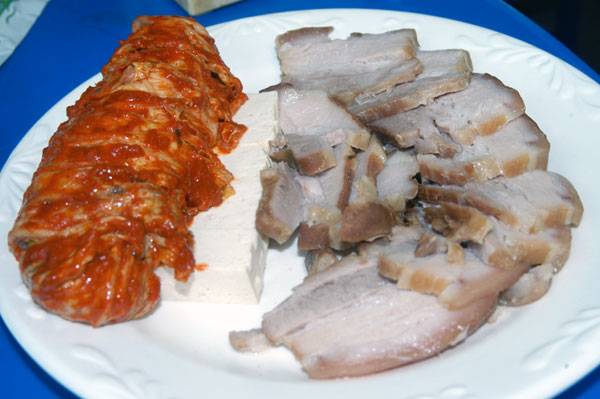 At night, there is a restaurant where people line up to have a drink with grilled jukkumi on briquettes.