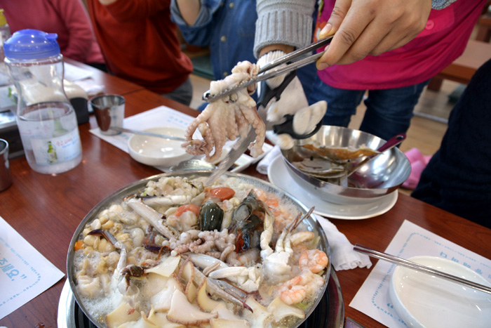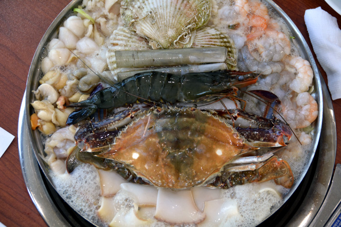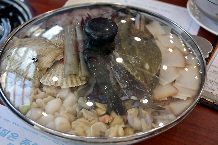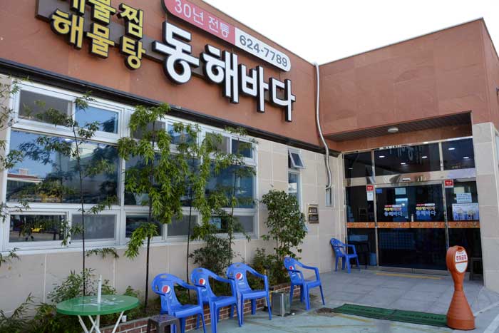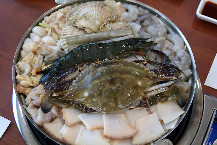 Hello, Donghae Bada is a seafood stew and steamed seafood restaurant located near the UN Memorial Park and Busan Museum, which commemorates the UN soldiers who died in the Korean War in 1950.
