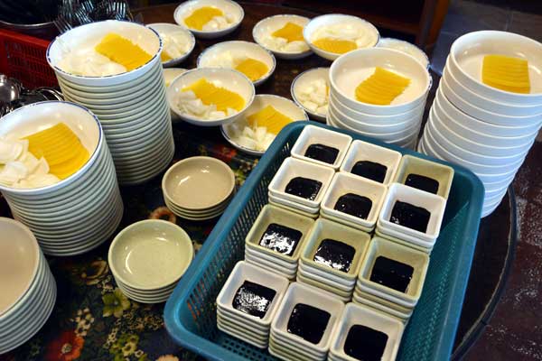 - Sauce of raw onions, pickled radish, and noodles