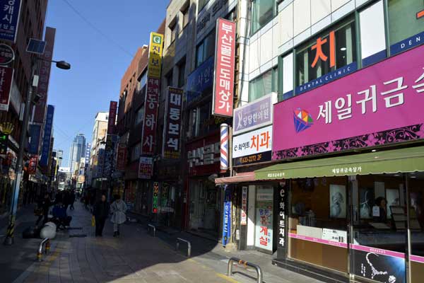 凡一洞貴金属通りの入口には「ゴールドのテーマ(Gold Theme)」が表記された四角の造形物が設置されており、近所に平和卸売市場と自由卸売市場、また、婚礼専門市場の釜山鎮市場もあって、以前から釜山を代表する貴金属通りとして脚光を浴びました。