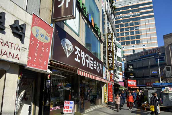 凡一洞(ボムイルドン)貴金属通りは釜山地下鉄1号線の凡一駅(ボムイルヨッ)10番出口と平和卸売市場の間のゴールドテーマ通りに沿って、ゴールドシティ貴金属商店街とセール貴金属商店街をはじめ、ラッキー、金塔、釜山ゴールド宝石商店街など500余店あまりの貴金属関連商店が集まっています。